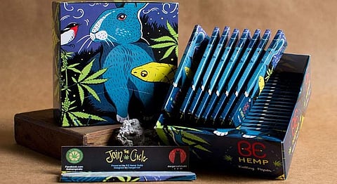 The most recent phase for the organic company is hemp smoking paper sourced from China, but with a unique touch. Menezes, who grew up in Kuwait with a commerce education background, tells us, “I’ve always loved art.” As he moved to Bangalore, he realised that every endeavour of his life needed to have something to do with art. And bringing that into smoking paper, the trio now packages their 100 percent organic hemp rolling material with gorgeous artworks displayed on the covers. With the first batch being designed by Sonali Zohra, there are more artists to come, using rolling paper covers as their canvas.